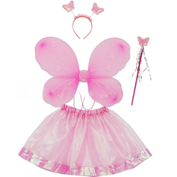 ילדים נסיכת טוטו חצאית כנפי פרפר סרט שרביט פיות סט ארבעה חלקים בנות מסיבת חג תחפושת הופעה